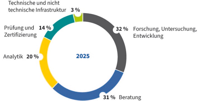 Pie chart with percentaged working capacity according to task in 2025